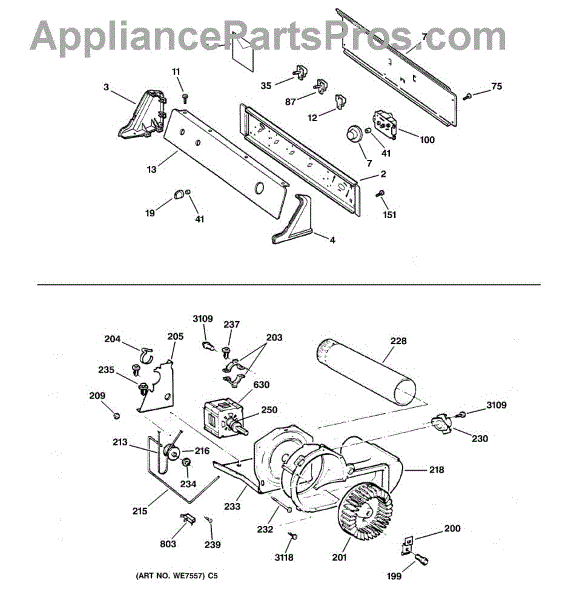 The Blower Wheel is an OEM replacement part for GE dryers. It has a role in the air circulation within the dryer, aiding in the even and efficient drying of clothes. The blower wheel, connected to the motor, helps in expelling the moist air out of the dryer through the exhaust vent during the drying cycle. Causes of a malfunctioning blower wheel are typically wear and tear from regular use, the accumulation of lint or debris, or damage to the wheel’s fins or central hub, which can impact its rotation and air circulation capability. Symptoms of a bad Blower Wheel include: