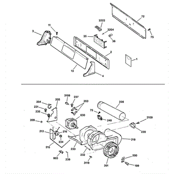 Parts for Ge EGD4000B0WW: Backsplash, Blower & Drive Assembly Parts