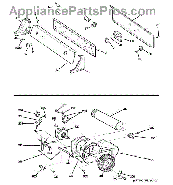 The Blower Wheel is an OEM replacement part for GE dryers. It has a role in the air circulation within the dryer, aiding in the even and efficient drying of clothes. The blower wheel, connected to the motor, helps in expelling the moist air out of the dryer through the exhaust vent during the drying cycle. Causes of a malfunctioning blower wheel are typically wear and tear from regular use, the accumulation of lint or debris, or damage to the wheel’s fins or central hub, which can impact its rotation and air circulation capability. Symptoms of a bad Blower Wheel include: