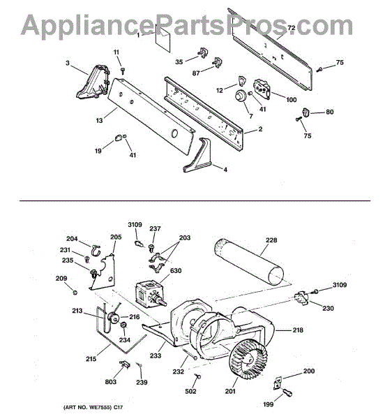 The Blower Wheel is an OEM replacement part for GE dryers. It has a role in the air circulation within the dryer, aiding in the even and efficient drying of clothes. The blower wheel, connected to the motor, helps in expelling the moist air out of the dryer through the exhaust vent during the drying cycle. Causes of a malfunctioning blower wheel are typically wear and tear from regular use, the accumulation of lint or debris, or damage to the wheel’s fins or central hub, which can impact its rotation and air circulation capability. Symptoms of a bad Blower Wheel include: