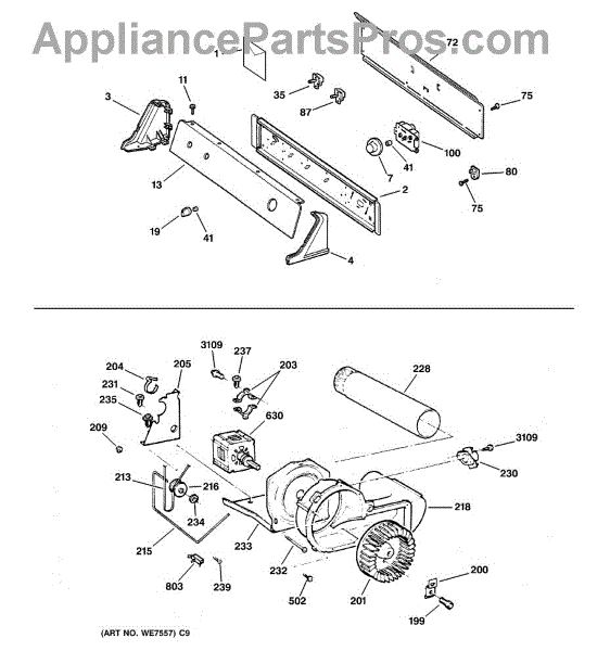 The Blower Wheel is an OEM replacement part for GE dryers. It has a role in the air circulation within the dryer, aiding in the even and efficient drying of clothes. The blower wheel, connected to the motor, helps in expelling the moist air out of the dryer through the exhaust vent during the drying cycle. Causes of a malfunctioning blower wheel are typically wear and tear from regular use, the accumulation of lint or debris, or damage to the wheel’s fins or central hub, which can impact its rotation and air circulation capability. Symptoms of a bad Blower Wheel include: