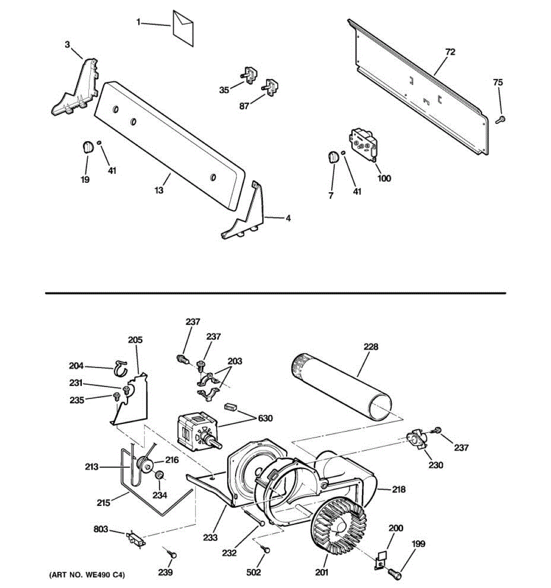 The Blower Wheel is an OEM replacement part for GE dryers. It has a role in the air circulation within the dryer, aiding in the even and efficient drying of clothes. The blower wheel, connected to the motor, helps in expelling the moist air out of the dryer through the exhaust vent during the drying cycle. Causes of a malfunctioning blower wheel are typically wear and tear from regular use, the accumulation of lint or debris, or damage to the wheel’s fins or central hub, which can impact its rotation and air circulation capability. Symptoms of a bad Blower Wheel include: