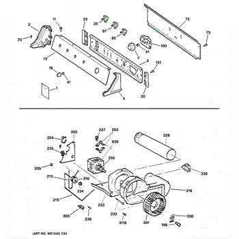 The Blower Wheel is an OEM replacement part for GE dryers. It has a role in the air circulation within the dryer, aiding in the even and efficient drying of clothes. The blower wheel, connected to the motor, helps in expelling the moist air out of the dryer through the exhaust vent during the drying cycle. Causes of a malfunctioning blower wheel are typically wear and tear from regular use, the accumulation of lint or debris, or damage to the wheel’s fins or central hub, which can impact its rotation and air circulation capability. Symptoms of a bad Blower Wheel include: