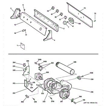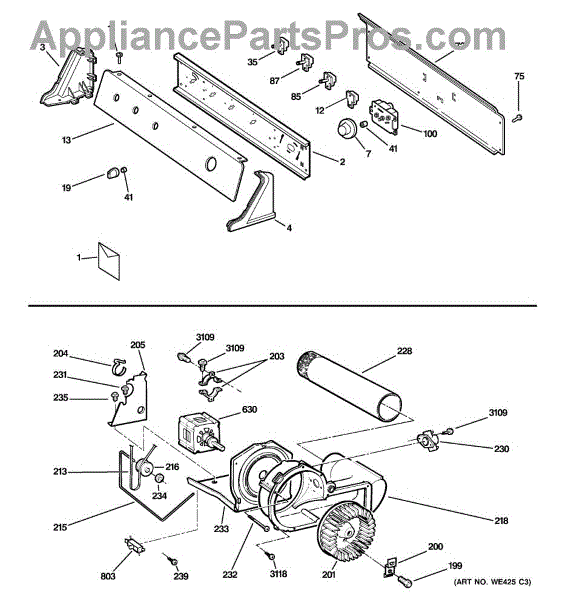The Blower Wheel is an OEM replacement part for GE dryers. It has a role in the air circulation within the dryer, aiding in the even and efficient drying of clothes. The blower wheel, connected to the motor, helps in expelling the moist air out of the dryer through the exhaust vent during the drying cycle. Causes of a malfunctioning blower wheel are typically wear and tear from regular use, the accumulation of lint or debris, or damage to the wheel’s fins or central hub, which can impact its rotation and air circulation capability. Symptoms of a bad Blower Wheel include: