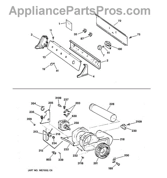 The Blower Wheel is an OEM replacement part for GE dryers. It has a role in the air circulation within the dryer, aiding in the even and efficient drying of clothes. The blower wheel, connected to the motor, helps in expelling the moist air out of the dryer through the exhaust vent during the drying cycle. Causes of a malfunctioning blower wheel are typically wear and tear from regular use, the accumulation of lint or debris, or damage to the wheel’s fins or central hub, which can impact its rotation and air circulation capability. Symptoms of a bad Blower Wheel include: