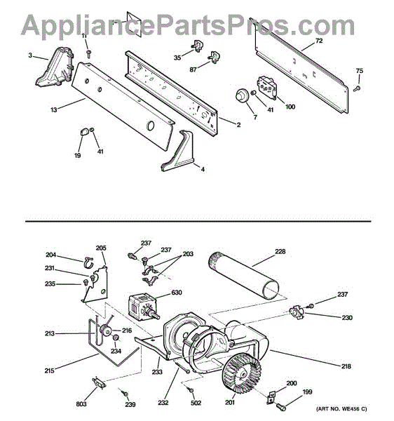 The Blower Wheel is an OEM replacement part for GE dryers. It has a role in the air circulation within the dryer, aiding in the even and efficient drying of clothes. The blower wheel, connected to the motor, helps in expelling the moist air out of the dryer through the exhaust vent during the drying cycle.