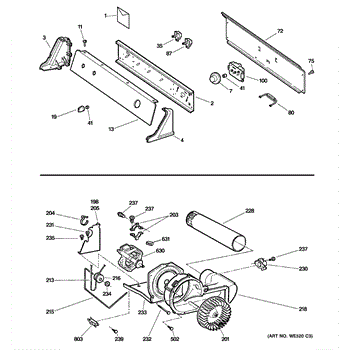 Parts for Ge DIST333JTCWW: 01 - Backsplash, Blower & Motor Assembly Parts