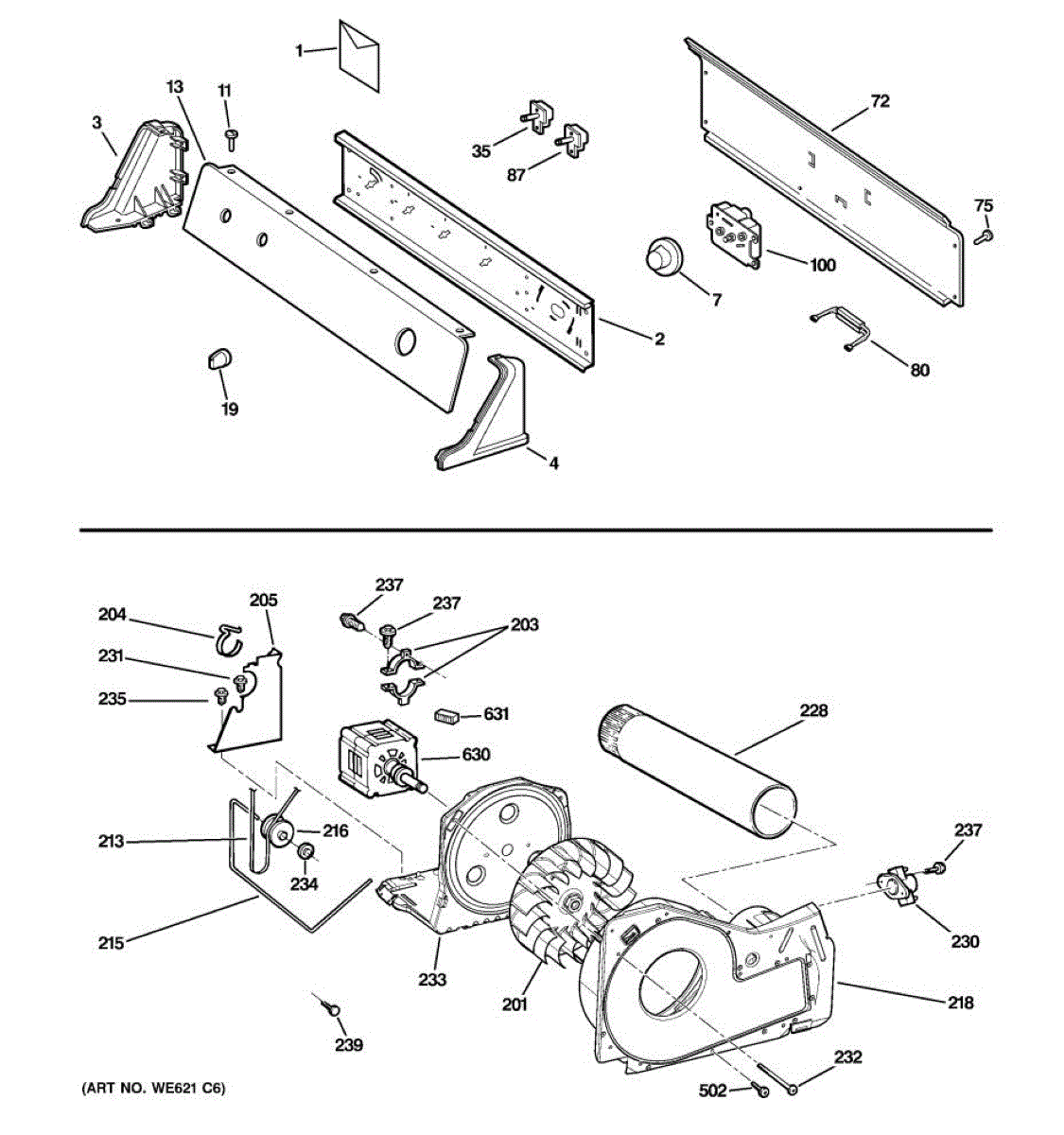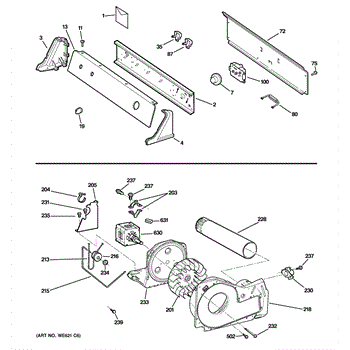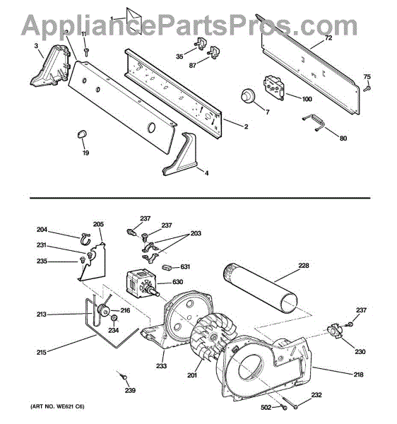 The Trap Duct Assembly is an OEM part for GE dryers. This part directs the airflow from the dryer drum to the exhaust vent. This assembly ensures efficient drying by guiding hot air out of the dryer while collecting lint and debris in the trap, preventing it from clogging the venting system.