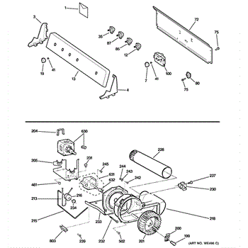 The Blower Wheel is an OEM replacement part for GE dryers. It has a role in the air circulation within the dryer, aiding in the even and efficient drying of clothes. The blower wheel, connected to the motor, helps in expelling the moist air out of the dryer through the exhaust vent during the drying cycle. Causes of a malfunctioning blower wheel are typically wear and tear from regular use, the accumulation of lint or debris, or damage to the wheel’s fins or central hub, which can impact its rotation and air circulation capability. Symptoms of a bad Blower Wheel include: