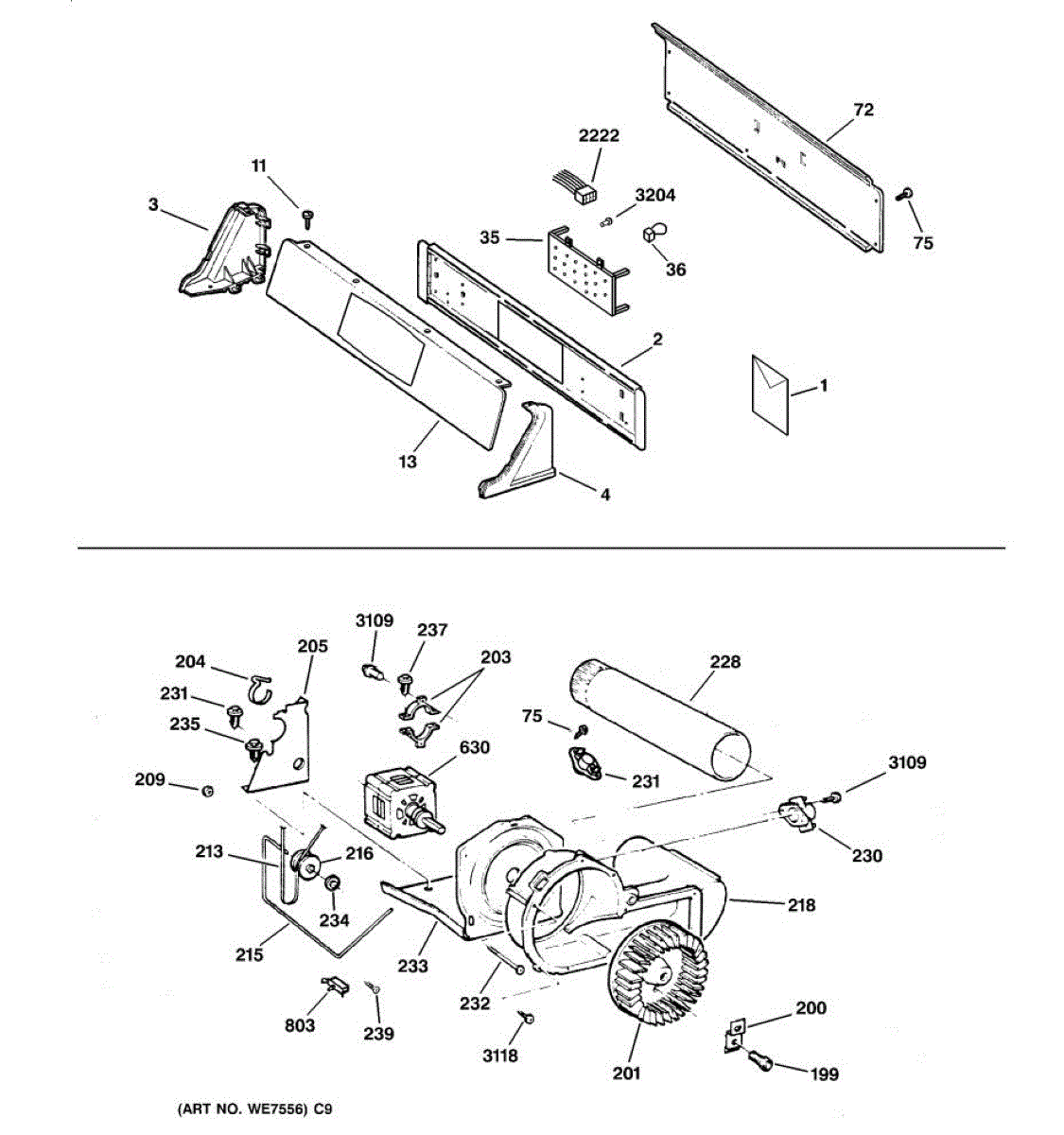 The Blower Wheel is an OEM replacement part for GE dryers. It has a role in the air circulation within the dryer, aiding in the even and efficient drying of clothes. The blower wheel, connected to the motor, helps in expelling the moist air out of the dryer through the exhaust vent during the drying cycle. Causes of a malfunctioning blower wheel are typically wear and tear from regular use, the accumulation of lint or debris, or damage to the wheel’s fins or central hub, which can impact its rotation and air circulation capability. Symptoms of a bad Blower Wheel include: