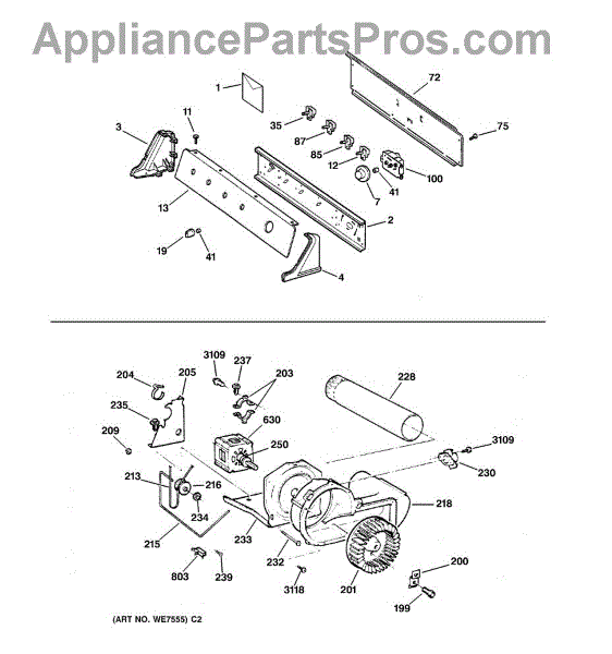 The Blower Wheel is an OEM replacement part for GE dryers. It has a role in the air circulation within the dryer, aiding in the even and efficient drying of clothes. The blower wheel, connected to the motor, helps in expelling the moist air out of the dryer through the exhaust vent during the drying cycle. Causes of a malfunctioning blower wheel are typically wear and tear from regular use, the accumulation of lint or debris, or damage to the wheel’s fins or central hub, which can impact its rotation and air circulation capability. Symptoms of a bad Blower Wheel include: