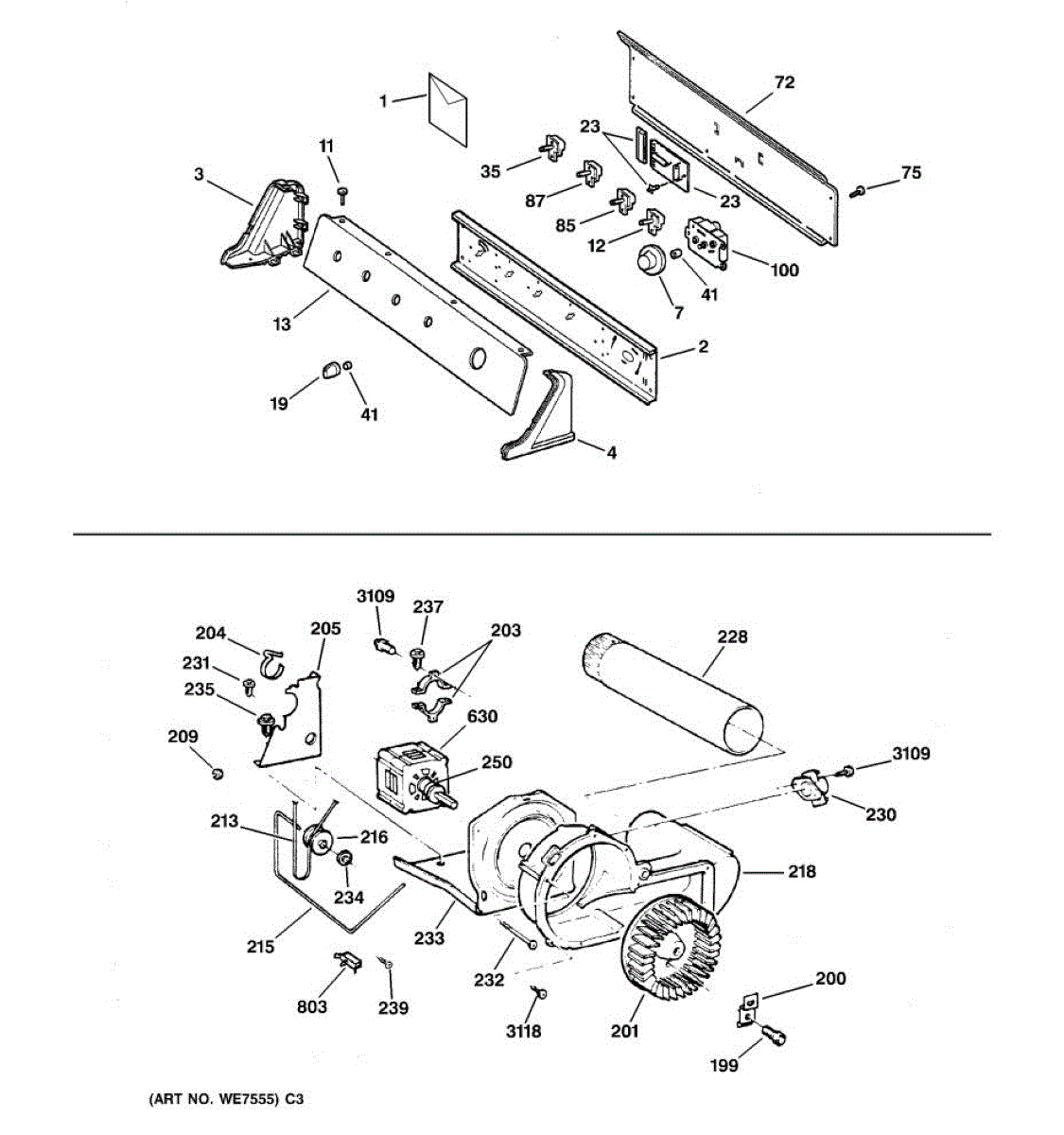 The Blower Wheel is an OEM replacement part for GE dryers. It has a role in the air circulation within the dryer, aiding in the even and efficient drying of clothes. The blower wheel, connected to the motor, helps in expelling the moist air out of the dryer through the exhaust vent during the drying cycle. Causes of a malfunctioning blower wheel are typically wear and tear from regular use, the accumulation of lint or debris, or damage to the wheel’s fins or central hub, which can impact its rotation and air circulation capability. Symptoms of a bad Blower Wheel include: