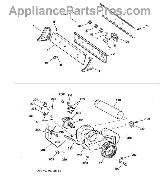 The Blower Wheel is an OEM replacement part for GE dryers. It has a role in the air circulation within the dryer, aiding in the even and efficient drying of clothes. The blower wheel, connected to the motor, helps in expelling the moist air out of the dryer through the exhaust vent during the drying cycle. Causes of a malfunctioning blower wheel are typically wear and tear from regular use, the accumulation of lint or debris, or damage to the wheel’s fins or central hub, which can impact its rotation and air circulation capability. Symptoms of a bad Blower Wheel include: