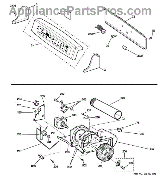 Parts for Ge DPSB620GC3WW: 01 - Backsplash, Blower & Motor Parts