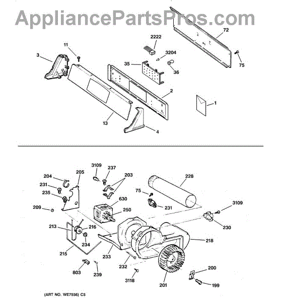 Parts for Ge DPSE592EA1WW: 01 - Backsplash, Blower & Motor Assembly Parts