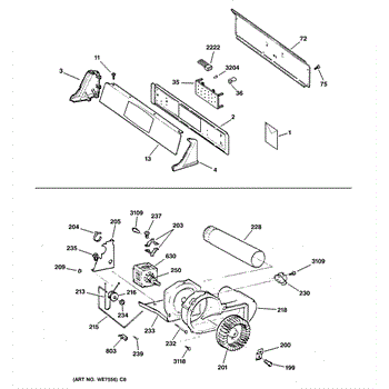 The Blower Wheel is an OEM replacement part for GE dryers. It has a role in the air circulation within the dryer, aiding in the even and efficient drying of clothes. The blower wheel, connected to the motor, helps in expelling the moist air out of the dryer through the exhaust vent during the drying cycle. Causes of a malfunctioning blower wheel are typically wear and tear from regular use, the accumulation of lint or debris, or damage to the wheel’s fins or central hub, which can impact its rotation and air circulation capability. Symptoms of a bad Blower Wheel include: