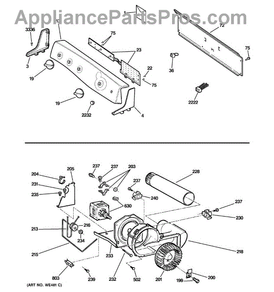 The Blower Wheel is an OEM replacement part for GE dryers. It has a role in the air circulation within the dryer, aiding in the even and efficient drying of clothes. The blower wheel, connected to the motor, helps in expelling the moist air out of the dryer through the exhaust vent during the drying cycle. Causes of a malfunctioning blower wheel are typically wear and tear from regular use, the accumulation of lint or debris, or damage to the wheel’s fins or central hub, which can impact its rotation and air circulation capability. Symptoms of a bad Blower Wheel include: