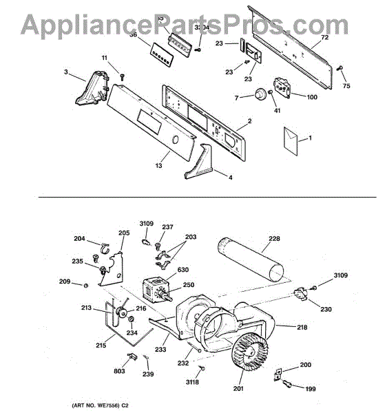 The Blower Wheel is an OEM replacement part for GE dryers. It has a role in the air circulation within the dryer, aiding in the even and efficient drying of clothes. The blower wheel, connected to the motor, helps in expelling the moist air out of the dryer through the exhaust vent during the drying cycle. Causes of a malfunctioning blower wheel are typically wear and tear from regular use, the accumulation of lint or debris, or damage to the wheel’s fins or central hub, which can impact its rotation and air circulation capability. Symptoms of a bad Blower Wheel include: