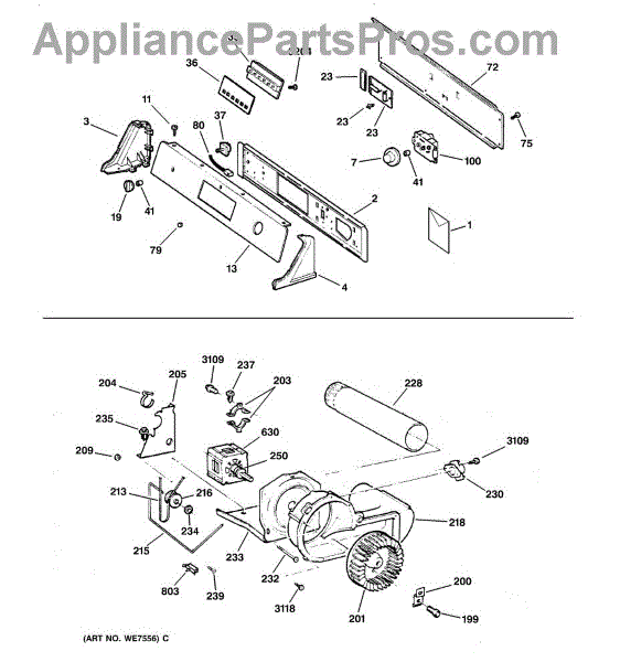 The Blower Wheel is an OEM replacement part for GE dryers. It has a role in the air circulation within the dryer, aiding in the even and efficient drying of clothes. The blower wheel, connected to the motor, helps in expelling the moist air out of the dryer through the exhaust vent during the drying cycle. Causes of a malfunctioning blower wheel are typically wear and tear from regular use, the accumulation of lint or debris, or damage to the wheel’s fins or central hub, which can impact its rotation and air circulation capability. Symptoms of a bad Blower Wheel include: