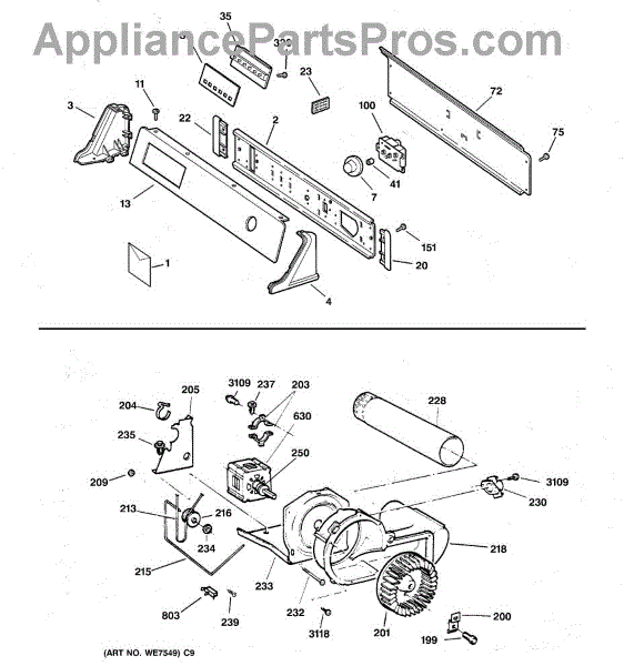 The Blower Wheel is an OEM replacement part for GE dryers. It has a role in the air circulation within the dryer, aiding in the even and efficient drying of clothes. The blower wheel, connected to the motor, helps in expelling the moist air out of the dryer through the exhaust vent during the drying cycle. Causes of a malfunctioning blower wheel are typically wear and tear from regular use, the accumulation of lint or debris, or damage to the wheel’s fins or central hub, which can impact its rotation and air circulation capability. Symptoms of a bad Blower Wheel include: