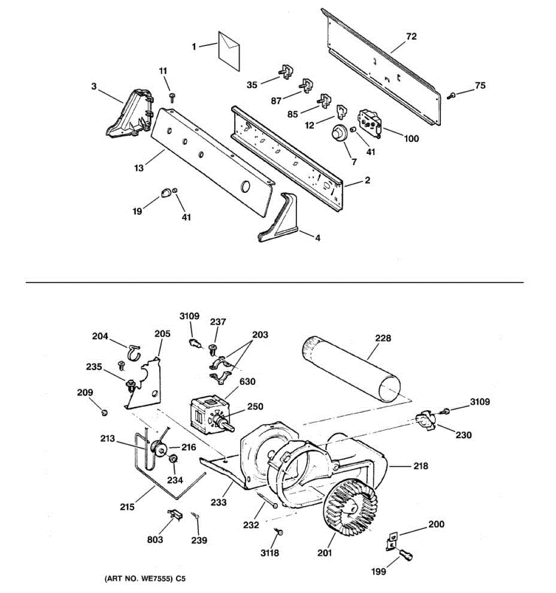 The Blower Wheel is an OEM replacement part for GE dryers. It has a role in the air circulation within the dryer, aiding in the even and efficient drying of clothes. The blower wheel, connected to the motor, helps in expelling the moist air out of the dryer through the exhaust vent during the drying cycle. Causes of a malfunctioning blower wheel are typically wear and tear from regular use, the accumulation of lint or debris, or damage to the wheel’s fins or central hub, which can impact its rotation and air circulation capability. Symptoms of a bad Blower Wheel include: