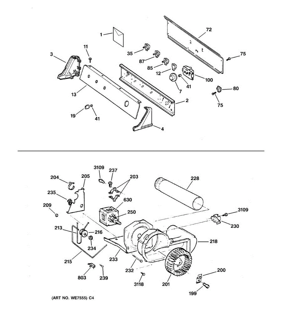 The Blower Wheel is an OEM replacement part for GE dryers. It has a role in the air circulation within the dryer, aiding in the even and efficient drying of clothes. The blower wheel, connected to the motor, helps in expelling the moist air out of the dryer through the exhaust vent during the drying cycle. Causes of a malfunctioning blower wheel are typically wear and tear from regular use, the accumulation of lint or debris, or damage to the wheel’s fins or central hub, which can impact its rotation and air circulation capability. Symptoms of a bad Blower Wheel include: