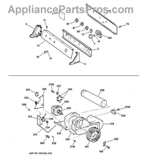 The Blower Wheel is an OEM replacement part for GE dryers. It has a role in the air circulation within the dryer, aiding in the even and efficient drying of clothes. The blower wheel, connected to the motor, helps in expelling the moist air out of the dryer through the exhaust vent during the drying cycle. Causes of a malfunctioning blower wheel are typically wear and tear from regular use, the accumulation of lint or debris, or damage to the wheel’s fins or central hub, which can impact its rotation and air circulation capability. Symptoms of a bad Blower Wheel include:
