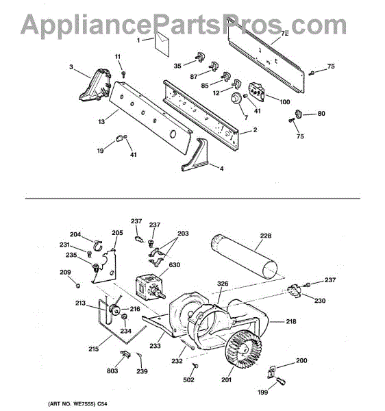 The Blower Wheel is an OEM replacement part for GE dryers. It has a role in the air circulation within the dryer, aiding in the even and efficient drying of clothes. The blower wheel, connected to the motor, helps in expelling the moist air out of the dryer through the exhaust vent during the drying cycle. Causes of a malfunctioning blower wheel are typically wear and tear from regular use, the accumulation of lint or debris, or damage to the wheel’s fins or central hub, which can impact its rotation and air circulation capability. Symptoms of a bad Blower Wheel include: