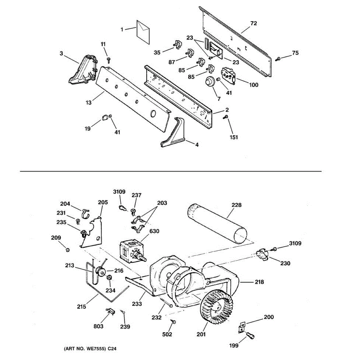The Blower Wheel is an OEM replacement part for GE dryers. It has a role in the air circulation within the dryer, aiding in the even and efficient drying of clothes. The blower wheel, connected to the motor, helps in expelling the moist air out of the dryer through the exhaust vent during the drying cycle. Causes of a malfunctioning blower wheel are typically wear and tear from regular use, the accumulation of lint or debris, or damage to the wheel’s fins or central hub, which can impact its rotation and air circulation capability. Symptoms of a bad Blower Wheel include: