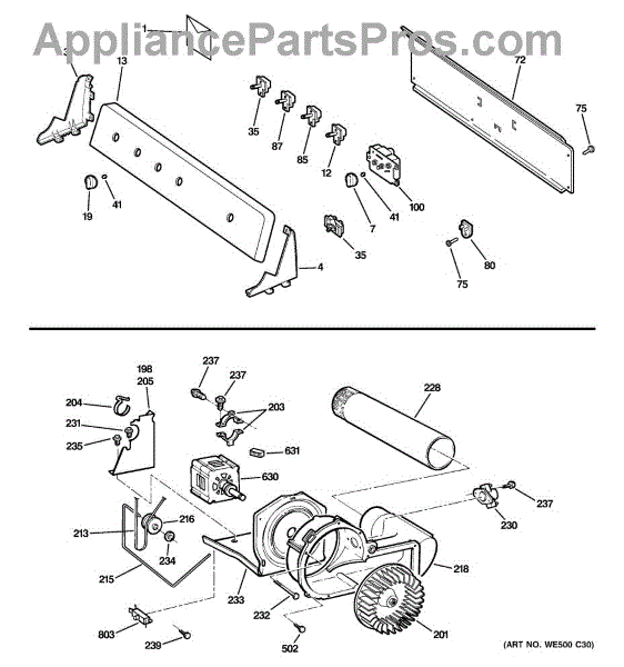 Parts for Ge DWSR483EG6WW: 01 - Backsplash, Blower & Motor Parts