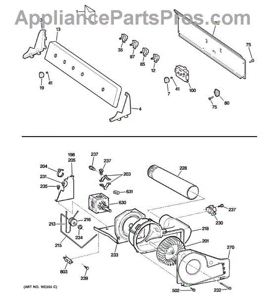 The Timer is an OEM part for GE dryers. It controls the length of the drying cycles by advancing through the cycle's various stages, including drying, cool down, and finish. This component ensures that the dryer operates for the correct amount of time based on the selected settings.