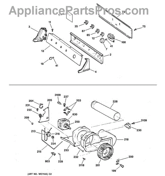 The Blower Wheel is an OEM replacement part for GE dryers. It has a role in the air circulation within the dryer, aiding in the even and efficient drying of clothes. The blower wheel, connected to the motor, helps in expelling the moist air out of the dryer through the exhaust vent during the drying cycle. Causes of a malfunctioning blower wheel are typically wear and tear from regular use, the accumulation of lint or debris, or damage to the wheel’s fins or central hub, which can impact its rotation and air circulation capability. Symptoms of a bad Blower Wheel include: