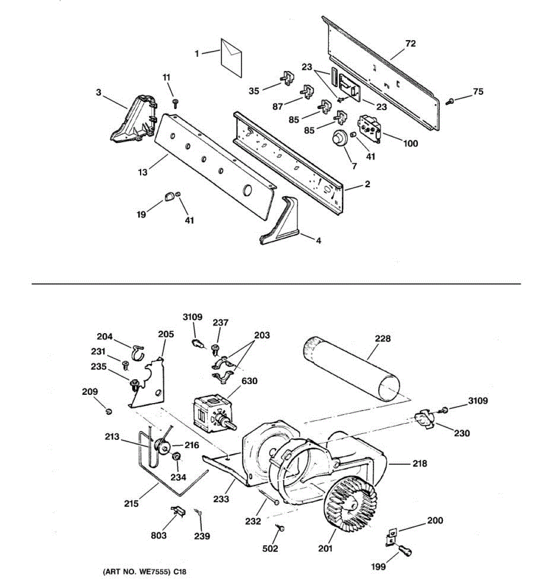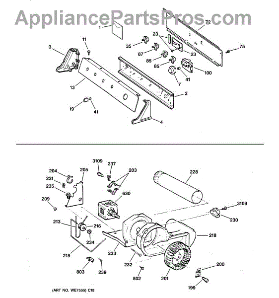 The Blower Wheel is an OEM replacement part for GE dryers. It has a role in the air circulation within the dryer, aiding in the even and efficient drying of clothes. The blower wheel, connected to the motor, helps in expelling the moist air out of the dryer through the exhaust vent during the drying cycle. Causes of a malfunctioning blower wheel are typically wear and tear from regular use, the accumulation of lint or debris, or damage to the wheel’s fins or central hub, which can impact its rotation and air circulation capability. Symptoms of a bad Blower Wheel include: