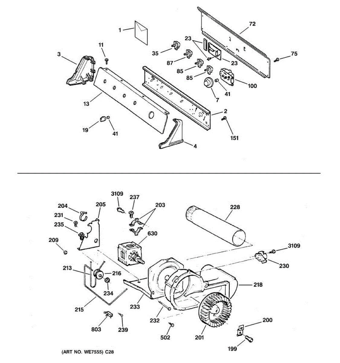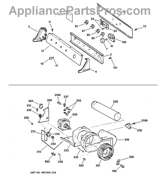 The Blower Wheel is an OEM replacement part for GE dryers. It has a role in the air circulation within the dryer, aiding in the even and efficient drying of clothes. The blower wheel, connected to the motor, helps in expelling the moist air out of the dryer through the exhaust vent during the drying cycle. Causes of a malfunctioning blower wheel are typically wear and tear from regular use, the accumulation of lint or debris, or damage to the wheel’s fins or central hub, which can impact its rotation and air circulation capability. Symptoms of a bad Blower Wheel include: