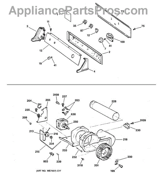 The Blower Wheel is an OEM replacement part for GE dryers. It has a role in the air circulation within the dryer, aiding in the even and efficient drying of clothes. The blower wheel, connected to the motor, helps in expelling the moist air out of the dryer through the exhaust vent during the drying cycle. Causes of a malfunctioning blower wheel are typically wear and tear from regular use, the accumulation of lint or debris, or damage to the wheel’s fins or central hub, which can impact its rotation and air circulation capability. Symptoms of a bad Blower Wheel include: