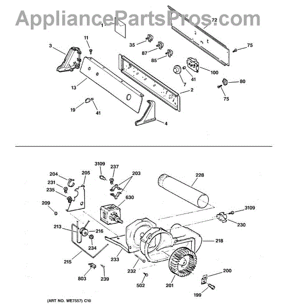 The Blower Wheel is an OEM replacement part for GE dryers. It has a role in the air circulation within the dryer, aiding in the even and efficient drying of clothes. The blower wheel, connected to the motor, helps in expelling the moist air out of the dryer through the exhaust vent during the drying cycle. Causes of a malfunctioning blower wheel are typically wear and tear from regular use, the accumulation of lint or debris, or damage to the wheel’s fins or central hub, which can impact its rotation and air circulation capability. Symptoms of a bad Blower Wheel include: