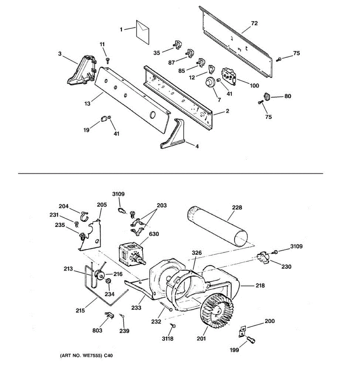 The Blower Wheel is an OEM replacement part for GE dryers. It has a role in the air circulation within the dryer, aiding in the even and efficient drying of clothes. The blower wheel, connected to the motor, helps in expelling the moist air out of the dryer through the exhaust vent during the drying cycle. Causes of a malfunctioning blower wheel are typically wear and tear from regular use, the accumulation of lint or debris, or damage to the wheel’s fins or central hub, which can impact its rotation and air circulation capability. Symptoms of a bad Blower Wheel include: