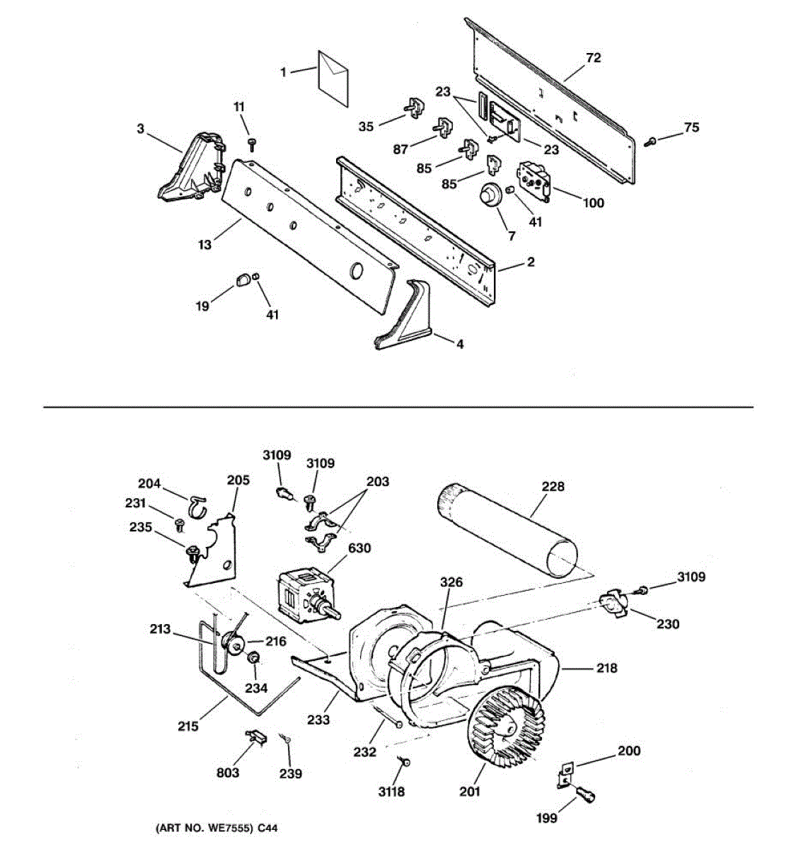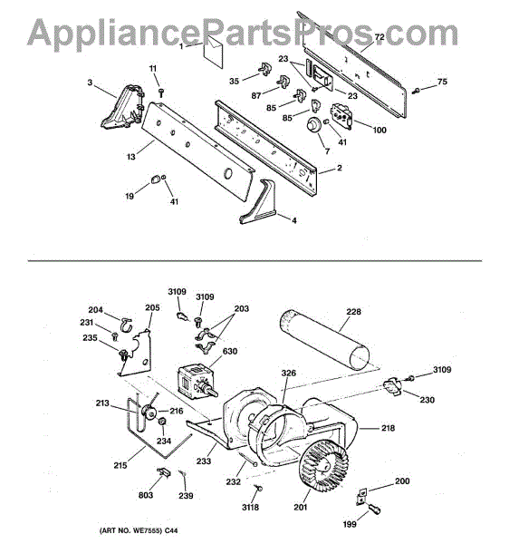 The Blower Wheel is an OEM replacement part for GE dryers. It has a role in the air circulation within the dryer, aiding in the even and efficient drying of clothes. The blower wheel, connected to the motor, helps in expelling the moist air out of the dryer through the exhaust vent during the drying cycle. Causes of a malfunctioning blower wheel are typically wear and tear from regular use, the accumulation of lint or debris, or damage to the wheel’s fins or central hub, which can impact its rotation and air circulation capability. Symptoms of a bad Blower Wheel include: