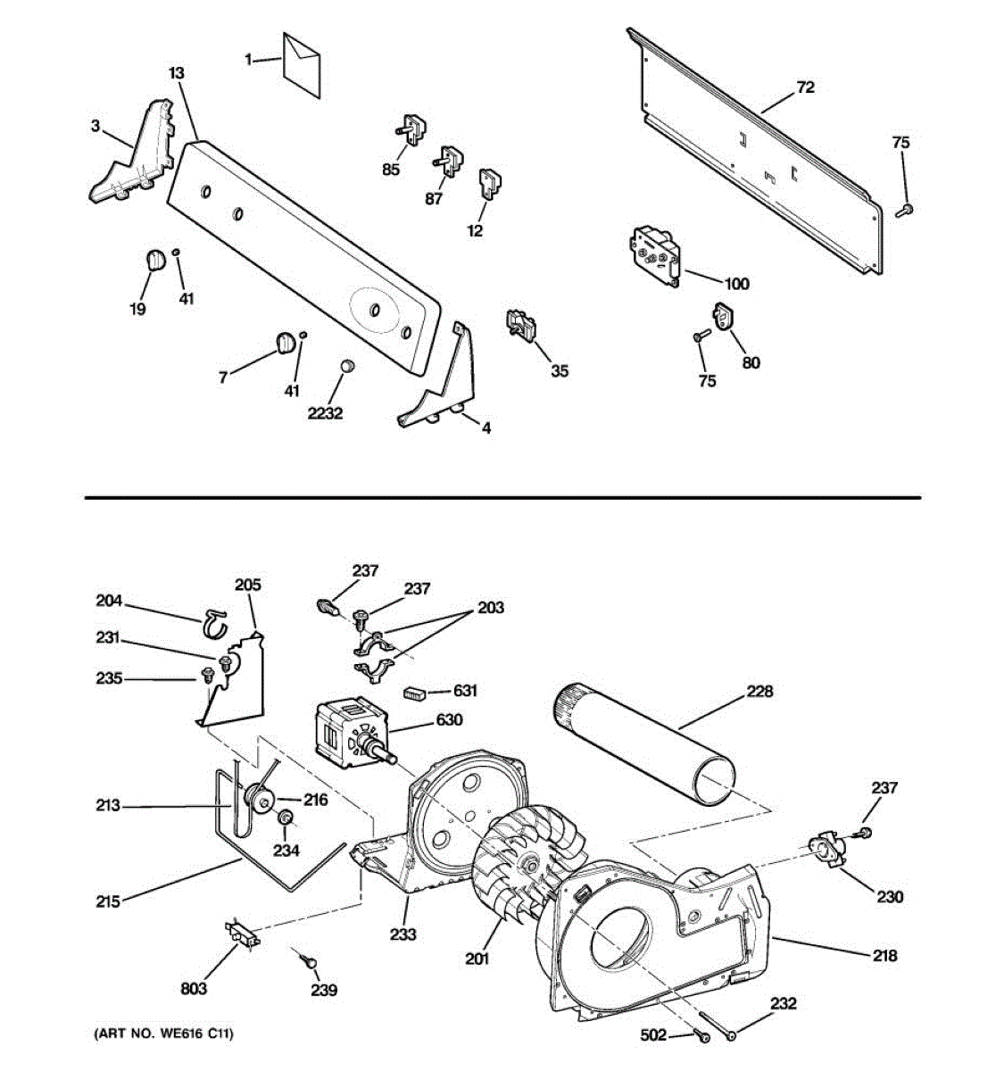 Replacement rear panel for dryers. Restores the cabinet's back surface when the original is dented, rusted, cracked, or damaged. Secures and protects internal wiring and components.