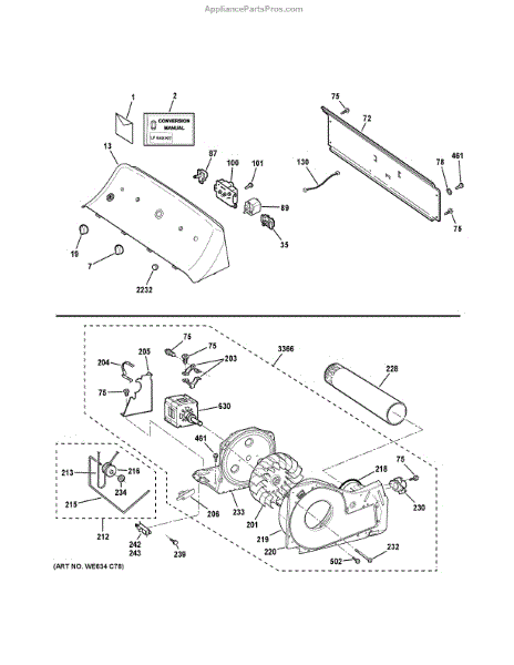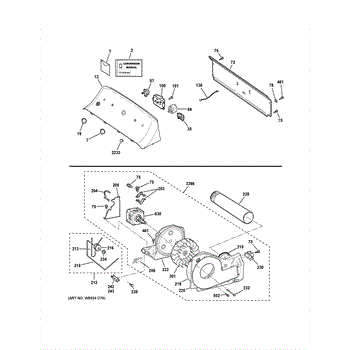 The Backsplash Assembly for Dryer is an OEM replacement part for GE electric and gas dryers. It forms the wall at the back of the dryer cabinet, protecting internal components from water, dust, and impact damage. This structural piece is important for dryer integrity.