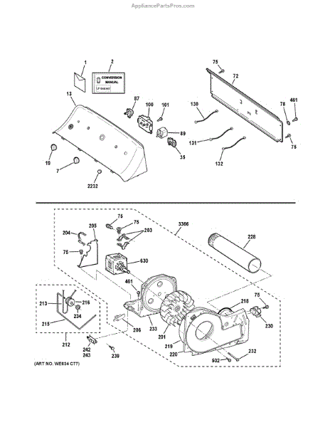 The Backsplash Assembly for Dryer is an OEM replacement part for GE electric and gas dryers. It forms the wall at the back of the dryer cabinet, protecting internal components from water, dust, and impact damage. This structural piece is important for dryer integrity.