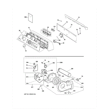 Rear access panel for dryers. Covers the back of the dryer cabinet and provides access to internal components. Replace if cracked, damaged, or missing.