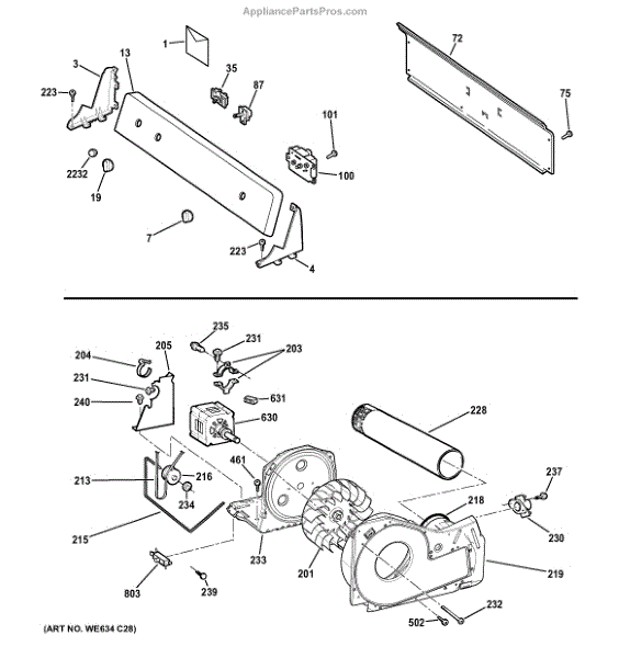 Parts for Hot Point HTDX100GM7WW: Backsplash, Blower & Motor Assembly Parts