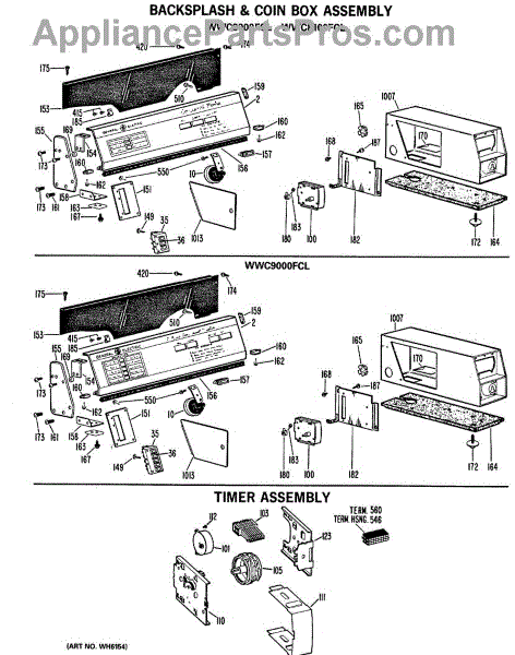 Parts for Ge WWC8000FCL: 02 - Backsplash & Coin Box Assembly Parts