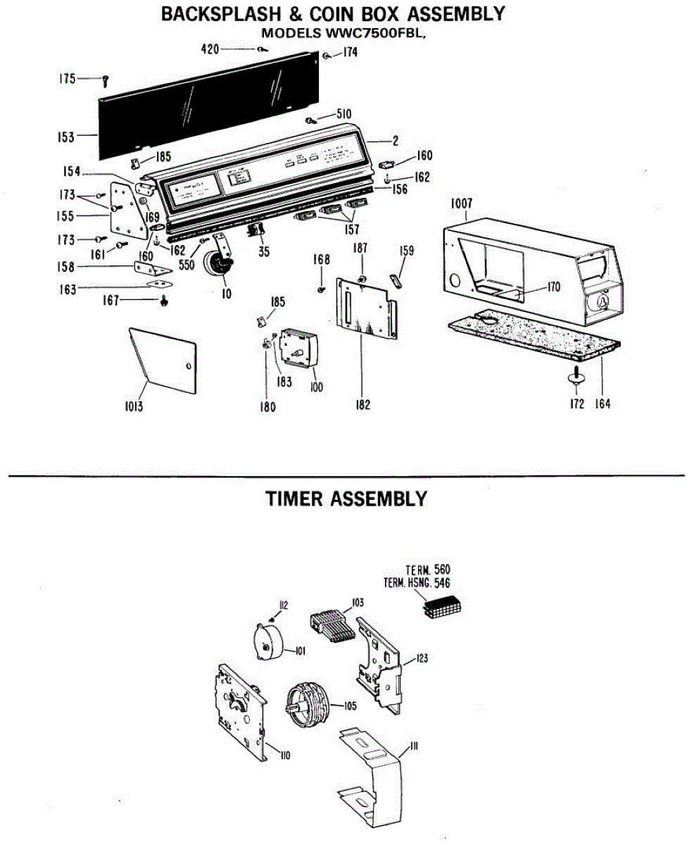 Retaining hardware kit for washers. Includes screws, nuts, and washers to secure internal components. Replace if hardware is missing, stripped, or lost.