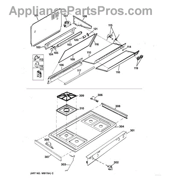 Parts for Ge JGHC60GEJ1: 02 - Backsplash & Cooktop Parts