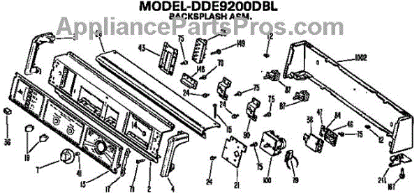 Parts for Ge DDE8108VJL: Backsplash For Dde9200dbl Only Parts