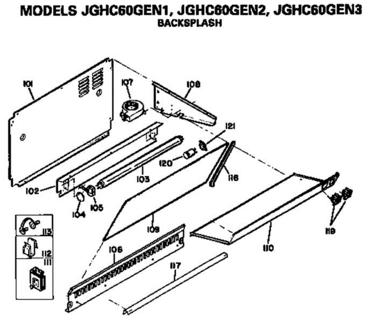 Parts for Ge JGHC60GEN2: Backsplash Parts