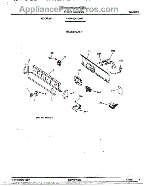 Parts for Ge SIG60100T0WG: Backsplash Parts