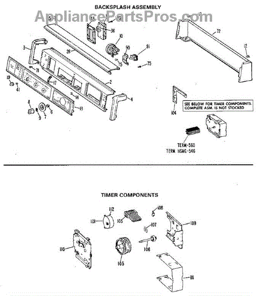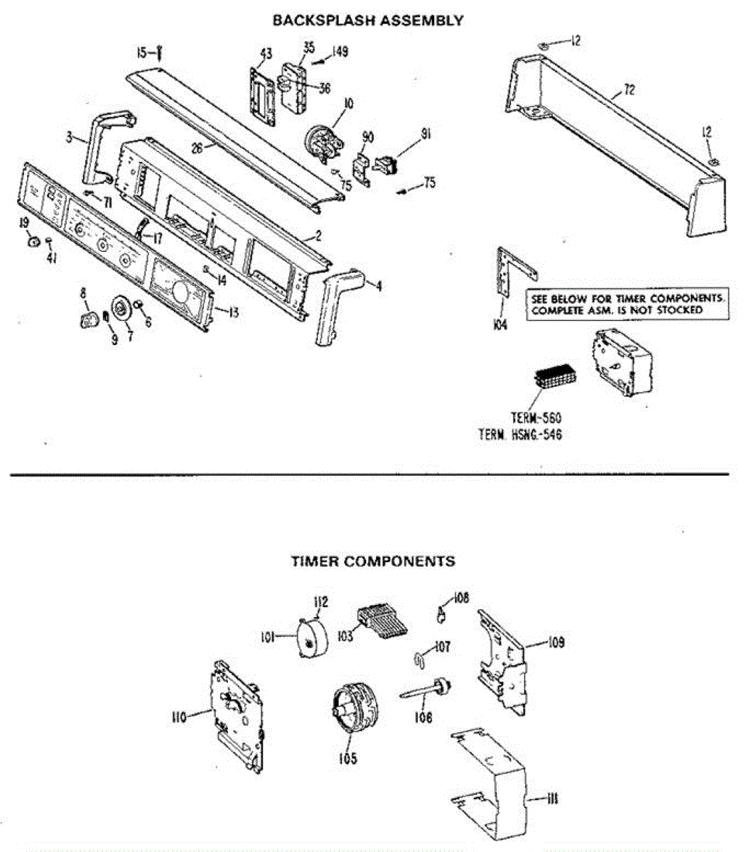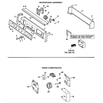 Parts for Ge WW8318LAL: Backsplash And Timer Assembly Parts